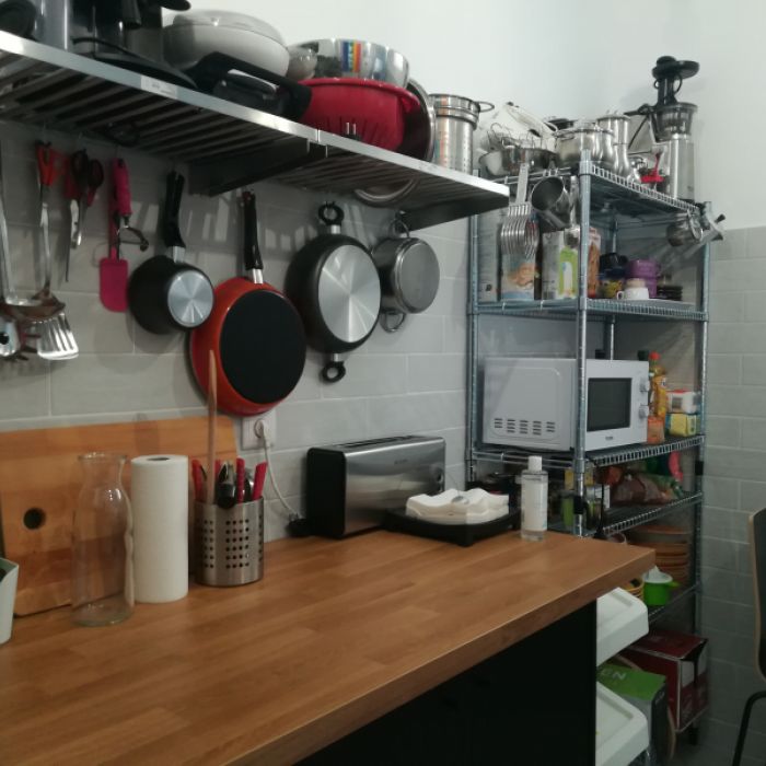 Roupa de cama, cozinha com microondas e máquina de lavar roupa, paga à parte